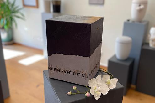 Bei uns im Institut können Sie eine Auswahl von Särgen, auch Fair-Trade-Modelle, als auch einfache bis erlesene und kunsthandwerkliche Urnen in unserer Ausstellung besichtigen, befühlen und auswählen.